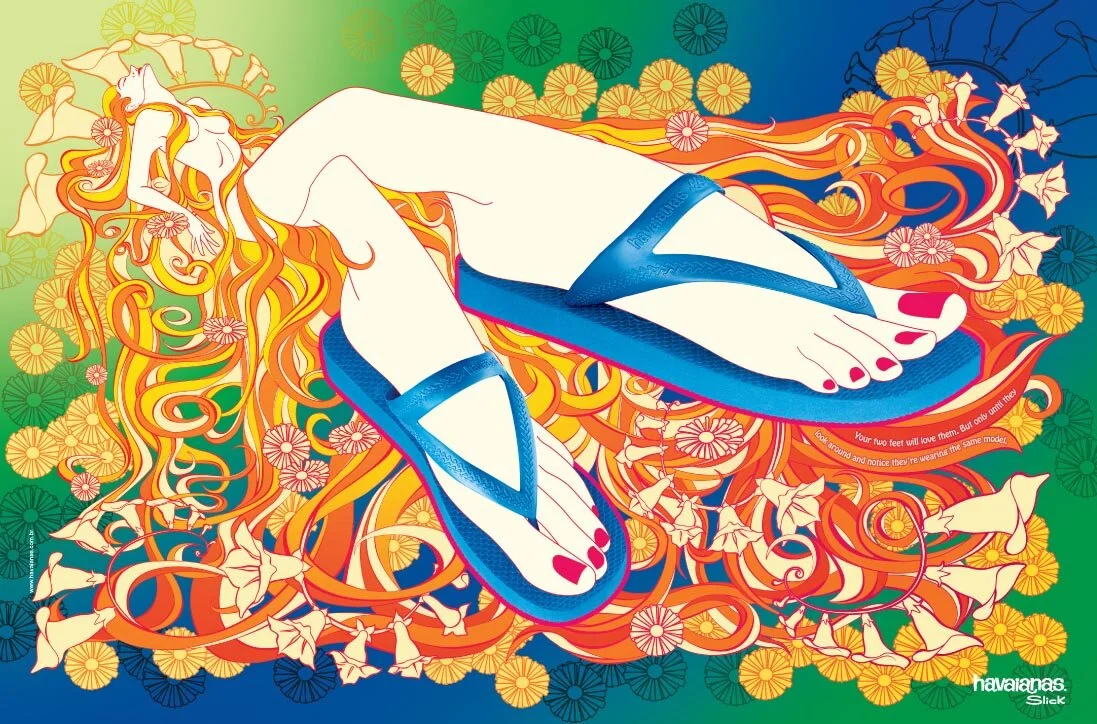 Being assigned to create print ads for Havaianas sandals is always a joy, especially for the art director. The work is expected to be creative and artistic. In this case, I also had the opportunity to illustrate the ads myself.